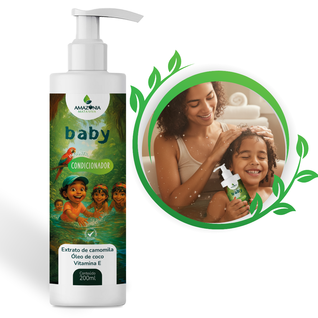 O Condicionador Infantil amazÔnia mata viva foi feito sob medida para cuidar dos cabelinhos sensíveis dos pequenos com a força suave da natureza. Sua fórmula rica e gentil promove hidratação profunda, deixando os fios nutridos, macios, soltinhos e fáceis de pentear — tudo isso sem pesar.