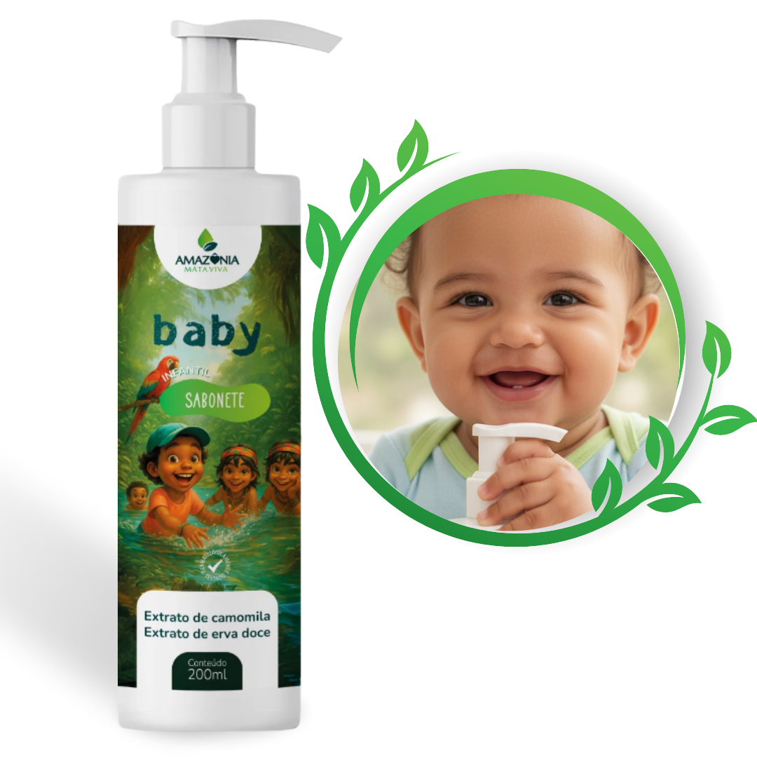 Feito com carinho e ingredientes naturais, o Sabonete Líquido Infantil Abraço da Natureza da amazÔnia mata viva foi criado especialmente para cuidar da pele delicada do seu bebê com toda a segurança que você procura — e a leveza que a natureza oferece.
